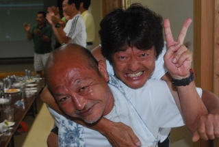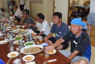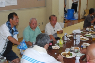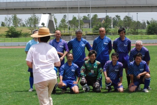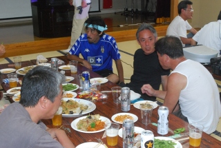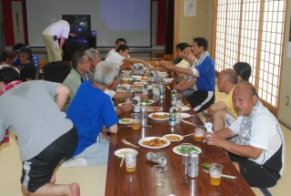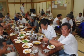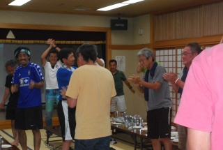 舎人陸上競技場でのエンジョイ50リーグ終了後、都合により不参加となった川口シニアを除く加盟6チーム有志が西伊興住区センターに集合。小杉氏撮影の試合のVTRで、自分達のプレーを鑑賞しつつ親睦を深めました。